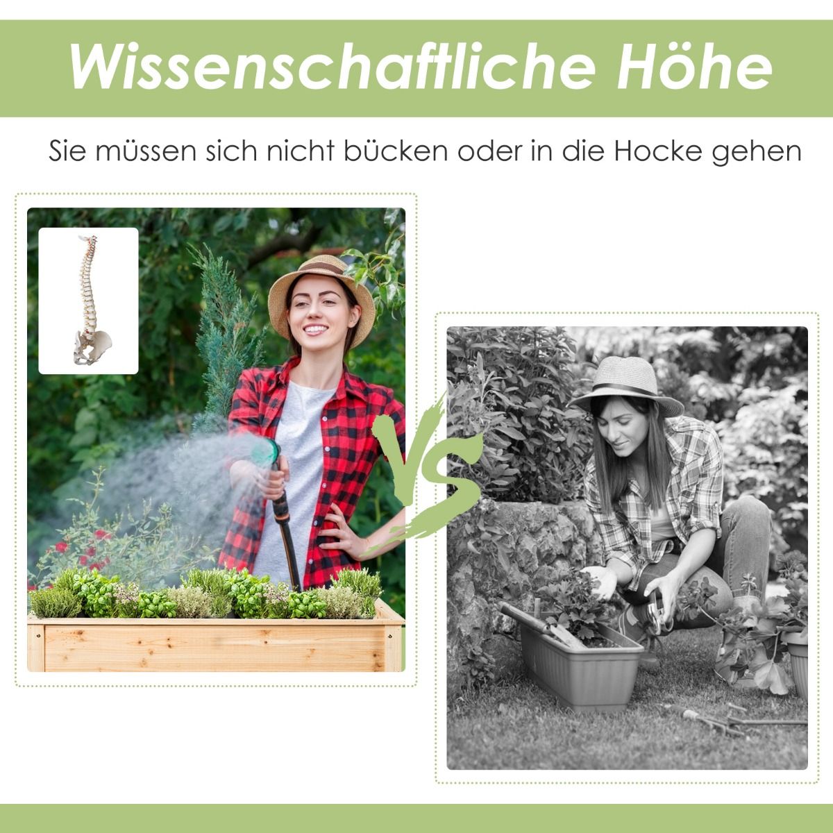 Ergonomische Arbeitshöhe von 81 cm – rückenschonendes Gärtnern